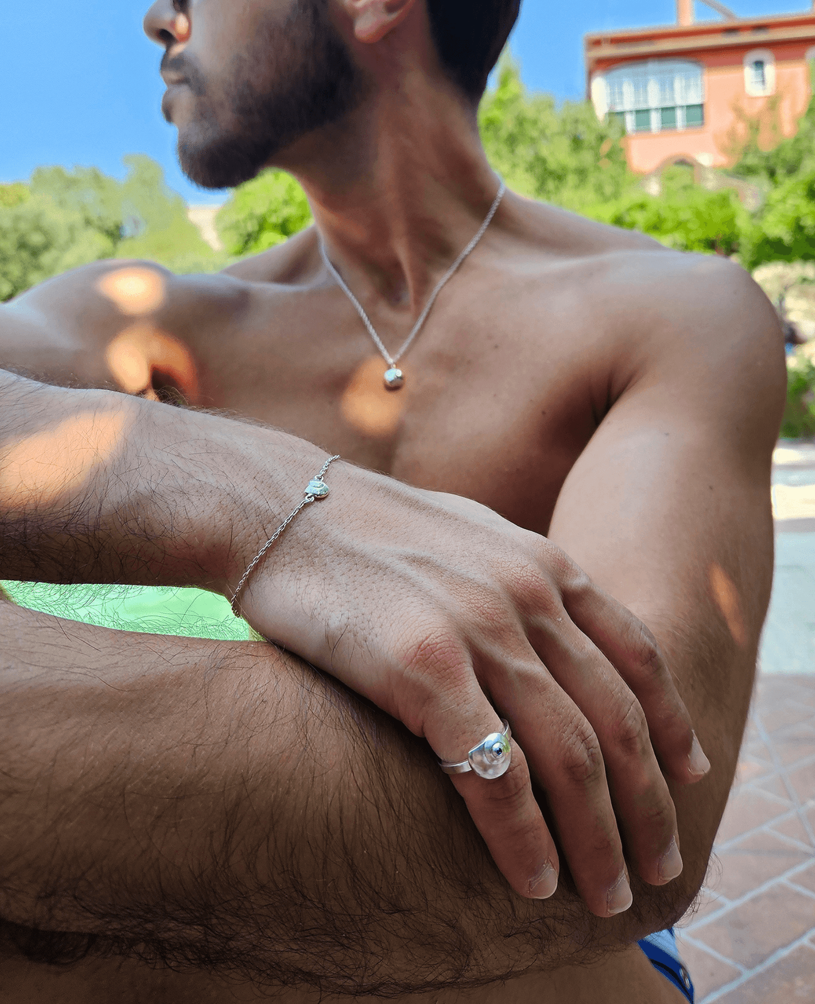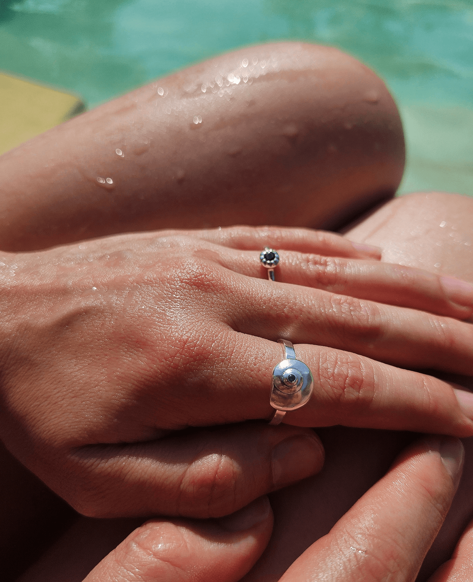 The blue zirconia shines like the calm gaze of the sea and captures the magical essence of the depths.