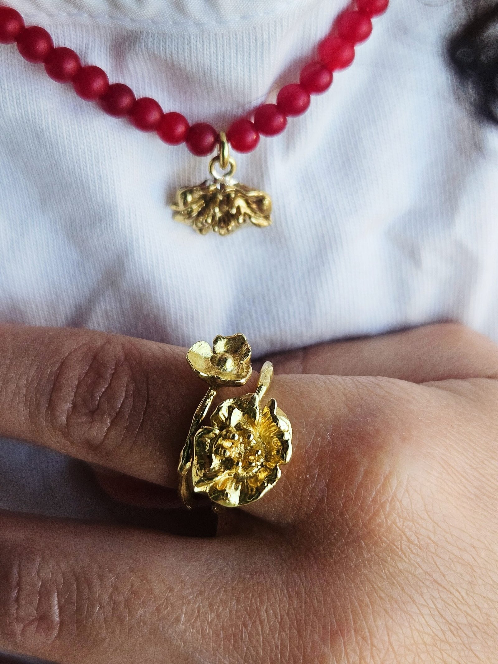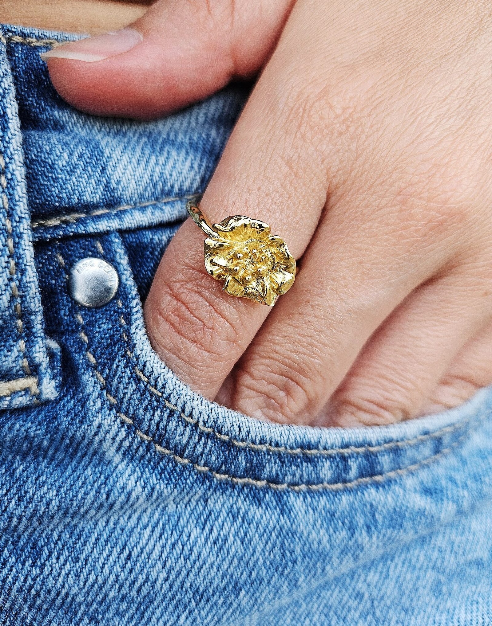 O anel Bloom é em latão com banho de ouro.