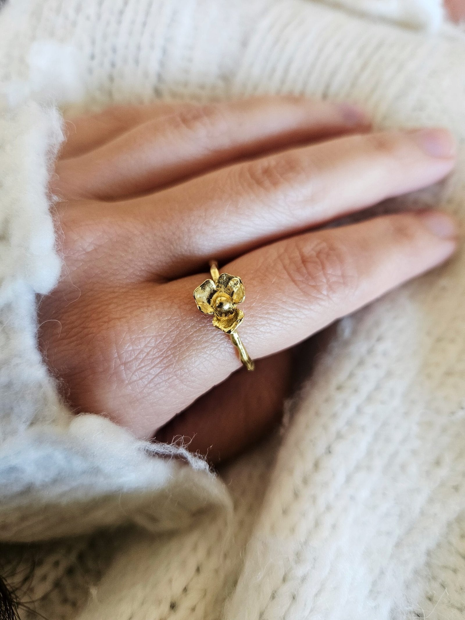 O anel Fiorella carrega a simplicidade mística de uma flor de três pétalas que é o símbolo do equilíbrio, beleza e essência.