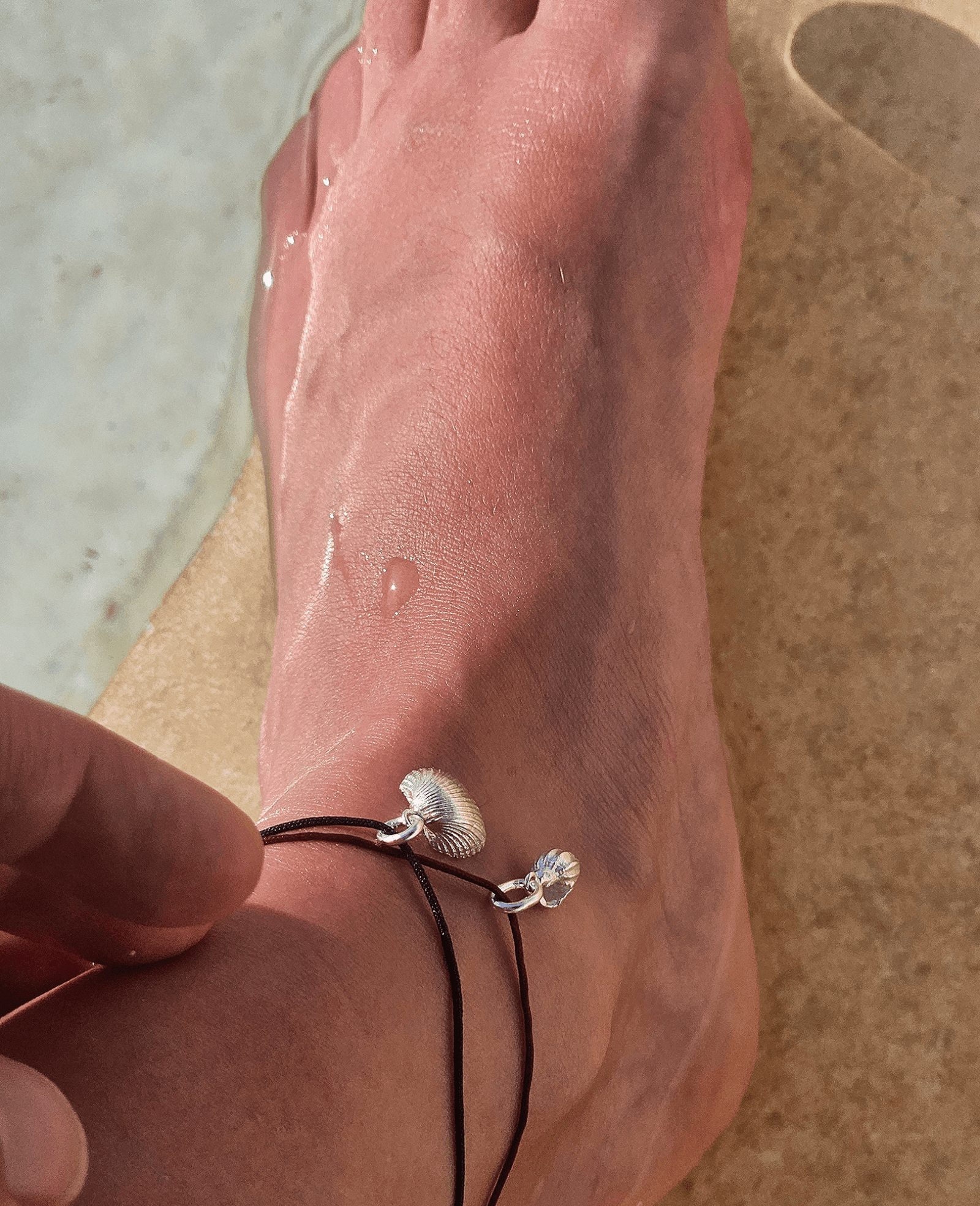 A pulseira de Pé Onda pode ser personalizada, pode escolher um pendente, uma cor para o cordão e o comprimento ideal.